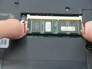 Используйте пальцы, чтобы отжать зажимы, удерживающие оперативную память.