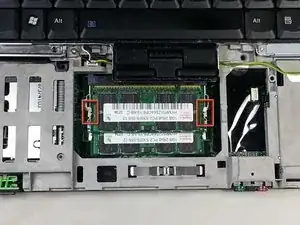 Одновременно нажмите на две защёлки по обе стороны от модуля оперативной памяти.