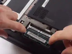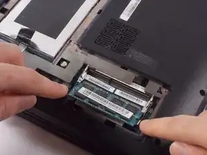Удалите оперативную память, осторожно вытянув её из разъёма.