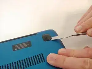 С помощью металлической лопатки снимите все резиновые квадраты на нижней части ноутбука.