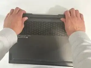 Переверните ноутбук и нажмите на кнопку питания на 5 секунд, чтобы убедиться, что внутри нет остаточного заряда.