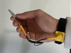 Наденьте заземляющий браслет на руку и подключите зажим к любой открытой металлической поверхности, чтобы заземлиться. Это необходимо для предотвращения электростатического разряда, способного повредить устройство.