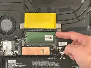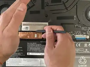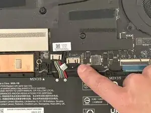 Аккуратно пошевелите разъём с чёрной лентой, чтобы отключить его от материнской платы.