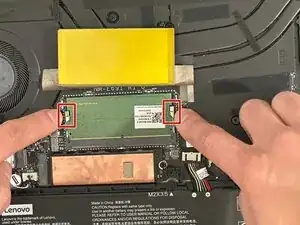 Нажмите на серебристые фиксаторы, чтобы освободить планку памяти.
