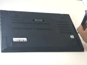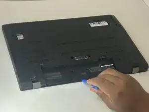 Вставьте пластиковый инструмент для вскрытия iFixit в зазор вдоль одного края ноутбука.