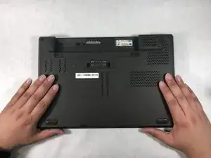 Переверните ноутбук, чтобы задняя часть была обращена вверх.