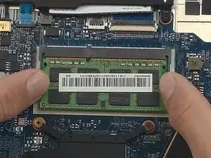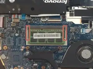С помощью больших пальцев осторожно отведите два зажима от оперативной памяти.