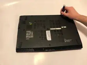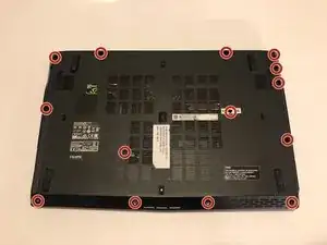Удалите пятнадцать винтов Phillips #0 длиной 6,5 мм с нижней части ноутбука с помощью отвертки Phillips #0.