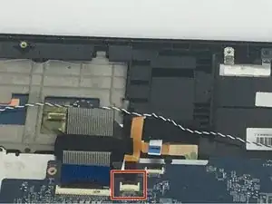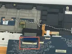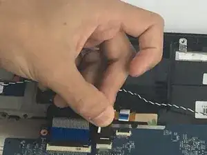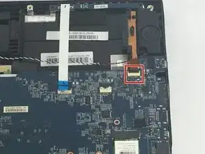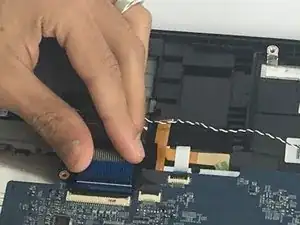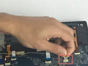 Осторожно подденьте чёрную защёлку, удерживающую кабель на плате, и затем извлеките кабель.