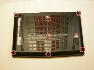 Удалите 7 указанных винтов Phillips #00 длиной 6 мм.