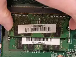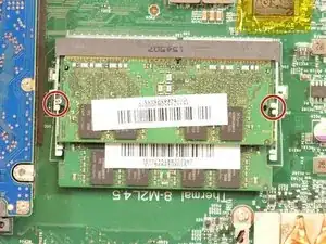 Оттяните наружу вкладки, удерживающие оперативную память. Планки оперативной памяти должны слегка выдвинуться наружу и теперь могут быть вынуты.