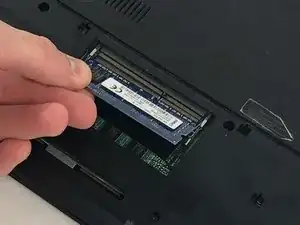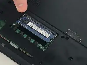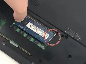 В области правого центра дна открывшегося отсека должно быть доступное пространство. Отведите в стороны серебряные зажимы, удерживающие оперативную память. Оперативная память выйдет из своего гнезда.