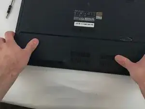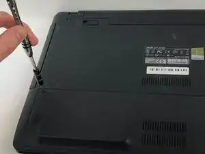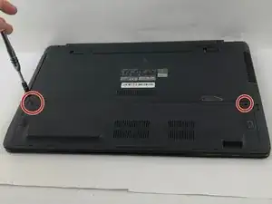 Используя отвертку JIS 00, открутите 12,7 мм винты в нижней левой/правой части корпуса на задней панели ноутбука.