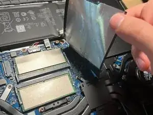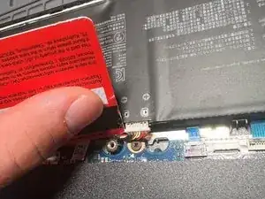 ОБЯЗАТЕЛЬНО!!!! Отключите питание ноутбука от встроенной батареи, слегка поддев защёлку с обеих сторон с помощью банковской карты.