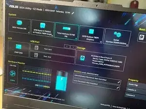 Включите ноутбук кнопкой PWR и когда появится логотип ASUS, нажмите клавишу F2 для входа в BIOS.