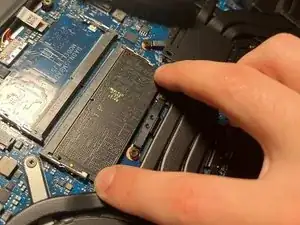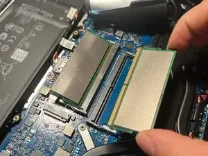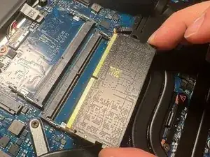Отщёлкните защёлки, удерживающие модули оперативной памяти (в сторону от планки), и извлеките обе планки оперативной памяти.