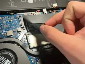 Частично отклейте наклейку над слотами оперативной памяти.