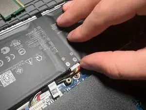 С помощью банковской карты и рукой аккуратно вставьте защёлку обратно на батарею.