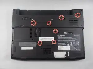 Удалите следующие винты, крепящие пластиковую панель на дне ноутбука: