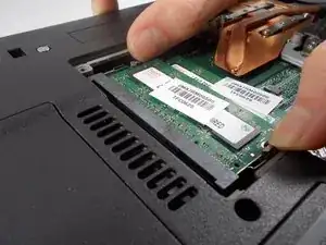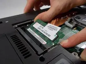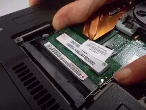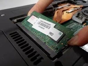 Вытяните оперативную память из материнской платы под углом 45 градусов.