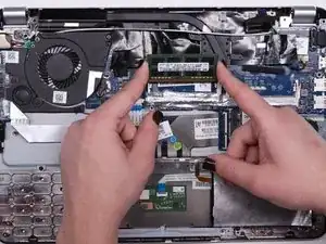 Шаги 3 и 4 требуют, чтобы вы отключили аккумулятор от устройства перед тем, как снять ОЗУ с материнской платы. Прежде чем начинать процесс замены, убедитесь, что ваш ноутбук отключен от любого источника питания и полностью выключен.