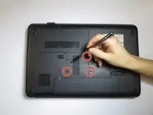Положите компьютер так, чтобы задняя сторона была обращена к вам, и найдите винт на изображении.
