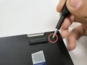 Перед началом разрядите батарею ноутбука ниже 25%. Заряженная литий-ионная батарея может загореться и/или взорваться при случайном проколе. Уложите устройство так, чтобы нижняя крышка была обращена вверх.