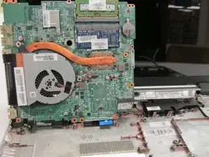 Между материнской платой и корпусом ноутбука всё ещё остаются кабели.