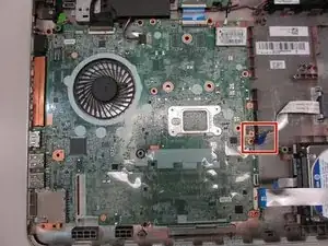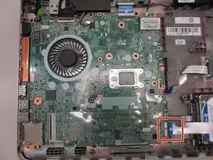 Отсоедините шлейф тачпада от материнской платы.