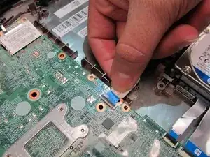 Отключите шлейф, проходящий над жёстким диском, от материнской платы.