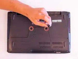 Удалите винты на 16 мм и 9 мм на малой панели внизу ноутбука с помощью отвертки Philips #1.