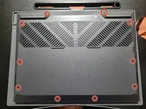 Используйте JIS‑отвёртку, чтобы открутить десять винтов на нижней крышке.