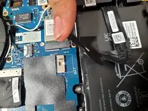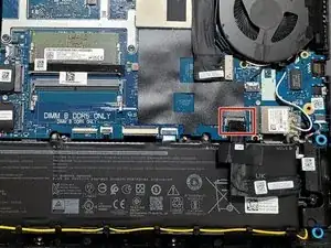Аккуратно вытяните ленточный кабель батареи прямо из разъёма, чтобы отключить его от материнской платы.