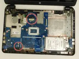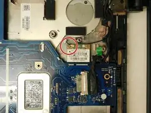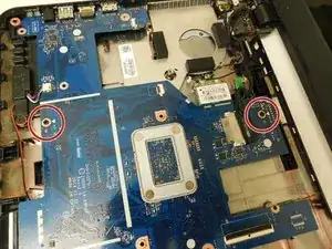 Удалите 2 винта, крепящие материнскую плату к корпусу ноутбука.
