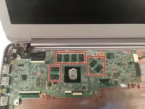 Это руководство проведёт Вас через замену оперативной памяти, если в Вашем HP Chromebook 14-ak041dx объём памяти недостаточен. Оперативная память расположена на материнской плате, поэтому для её замены потребуется выпаять её с материнской платы.