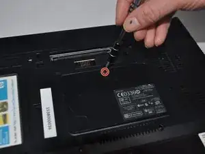 Пластиковая крышка находится на задней стороне ноутбука, по центру нижней панели корпуса.