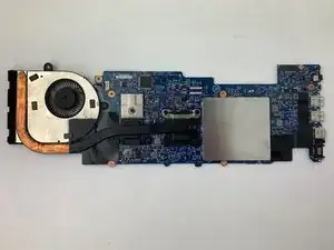 Используйте открывающий инструмент, чтобы приподнять материнскую плату со стороны вентилятора. Затем сдвиньте узел материнской платы влево и выньте его.