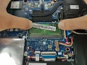 Чтобы удалить планку RAM, просто отодвиньте зажимы с обеих сторон наружу, и RAM наклонится вверх.