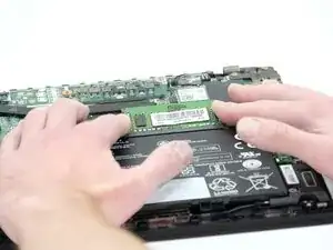 Используя два пальца, отсоедините металлические защелки, удерживающие модуль памяти.