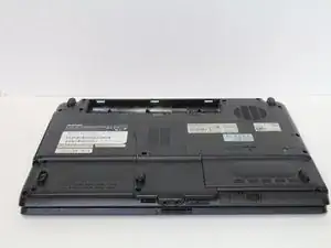 Закройте ноутбук и переверните его так, чтобы основание было обращено вверх, а шарнир — от вас.