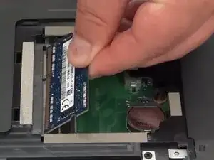 После извлечения старой планки вставьте новую планку оперативной памяти.