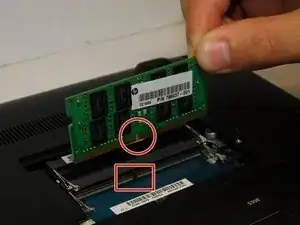 Совместите новый модуль с гнездом для оперативной памяти и вставьте планку по диагонали, она будет свободно лежать в своем месте.