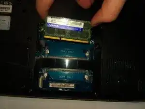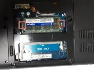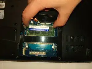 Вытяните оперативную память из ноутбука, аккуратно приподняв её.