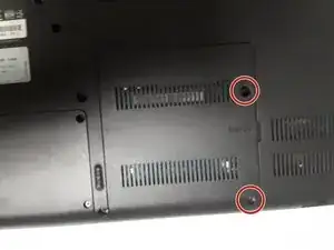 Открутите и удалите два винта с задней панели, помеченной "Оперативная память", с помощью крестовой отвертки #0.