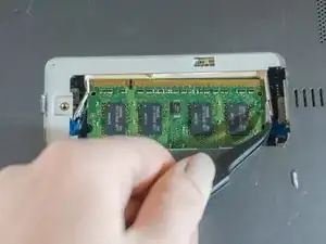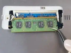 С помощью пинцета отожмите края металлических зажимов, удерживающих модуль оперативной памяти, от карты. Вы должны увидеть, как карта поднимается.