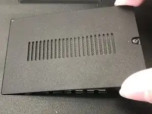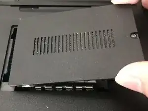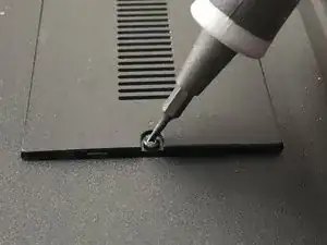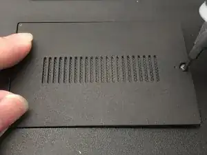 Найдите панель в центральной части ноутбука с вентиляционными решётками и одним винтом.
