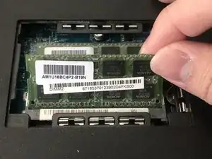 Отведите фиксаторы, удерживающие память, в стороны — модуль памяти поднимется.