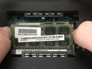 Аккуратно выдвиньте модуль памяти и извлеките его. Убедитесь, что Вы держите модуль только за края, не касаясь электронных компонентов.