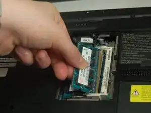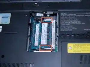 Чтобы безопасно извлечь оперативную память, сначала обязательно выньте аккумулятор. Оперативная память находится под панелью на ноутбуке и может быть извлечена вручную.