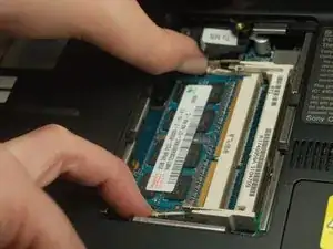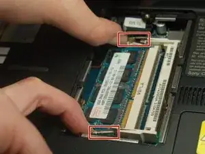 Чтобы извлечь вторичную оперативную память, воспользуйтесь тем же наружным давлением на замки.